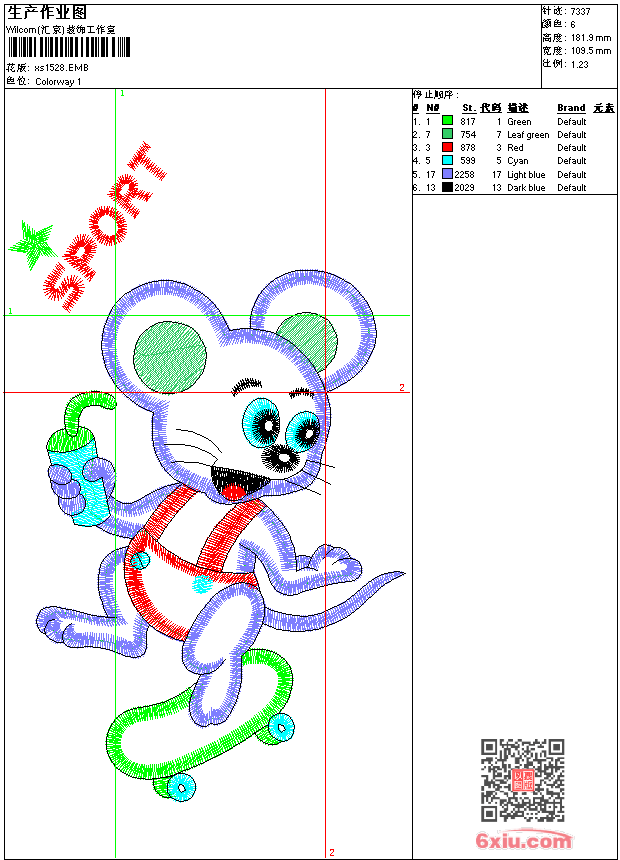 - 版带文件需绣花软件方可打开,可配色打印导出各种格式或直接上机绣。如无绣花软件可下载1:1模拟效果图。