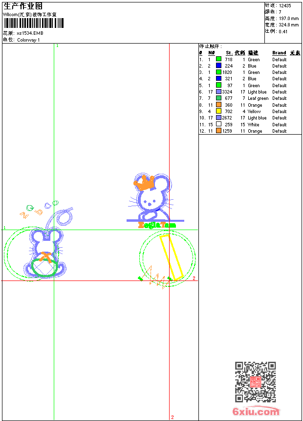- 版带文件需绣花软件方可打开,可配色打印导出各种格式或直接上机绣。如无绣花软件可下载1:1模拟效果图。
