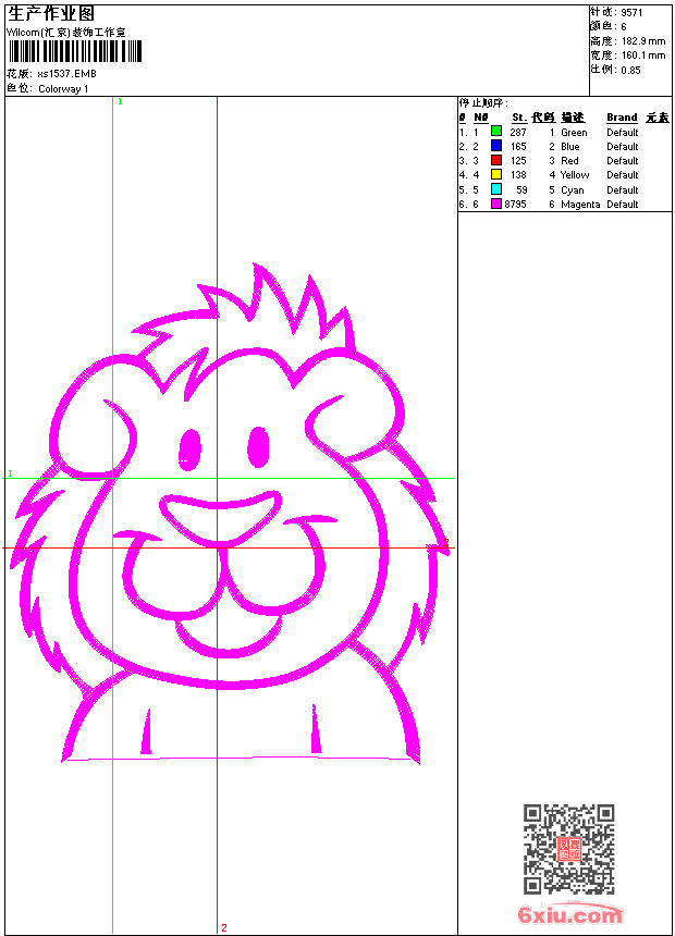 - emb花版参数: 大小:53.00 KB / 尺寸:160*183[毫米] / 针数:9571针 / 线色:6 / 格式:emb / 版本:9