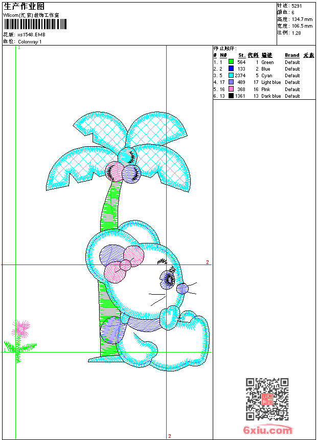 - 版带文件需绣花软件方可打开,可配色打印导出各种格式或直接上机绣。如无绣花软件可下载1:1模拟效果图。