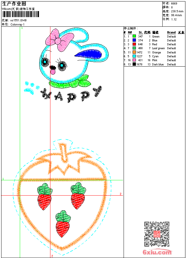 - 版带文件需绣花软件方可打开,可配色打印导出各种格式或直接上机绣。如无绣花软件可下载1:1模拟效果图。