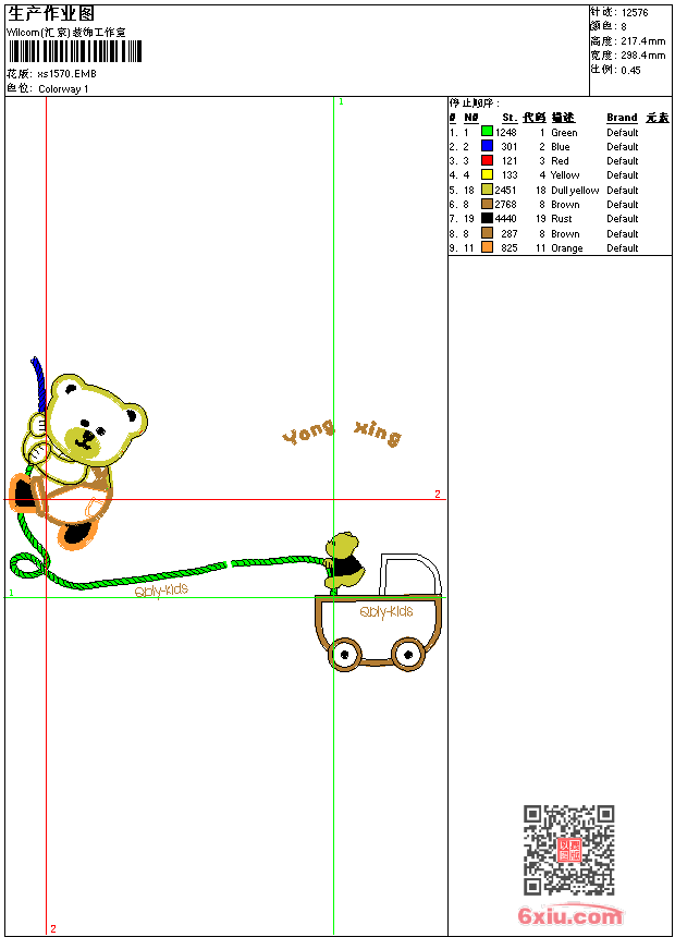 - 版带文件需绣花软件方可打开,可配色打印导出各种格式或直接上机绣。如无绣花软件可下载1:1模拟效果图。