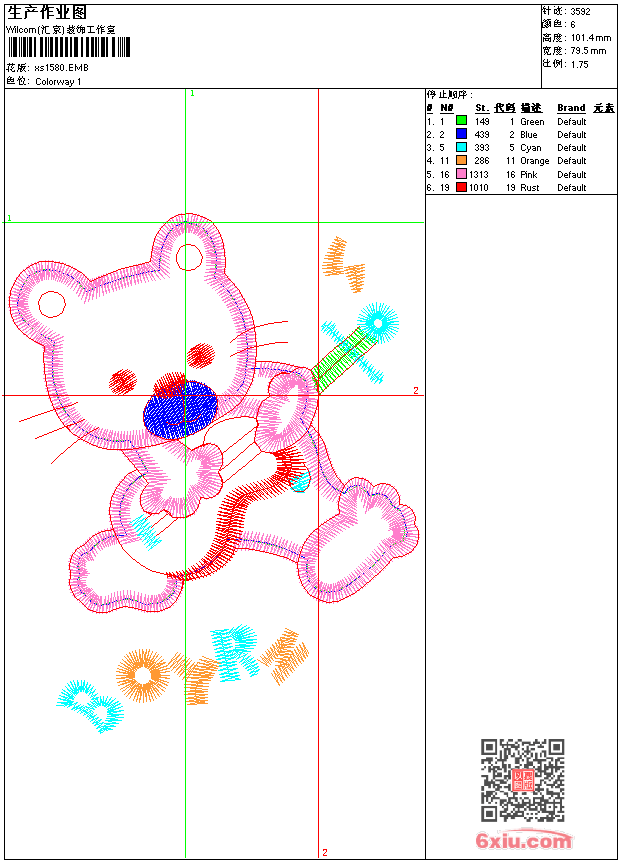 - 版带文件需绣花软件方可打开,可配色打印导出各种格式或直接上机绣。如无绣花软件可下载1:1模拟效果图。