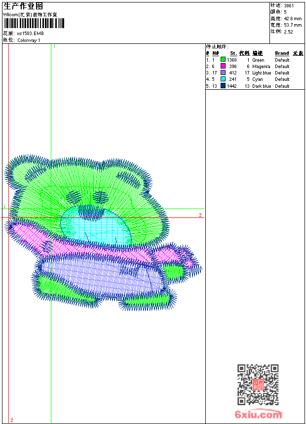 - 版带文件需绣花软件方可打开,可配色打印导出各种格式或直接上机绣。如无绣花软件可下载1:1模拟效果图。