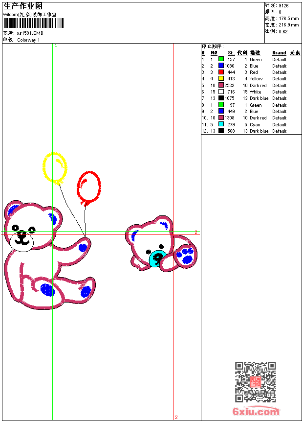 - 版带文件需绣花软件方可打开,可配色打印导出各种格式或直接上机绣。如无绣花软件可下载1:1模拟效果图。