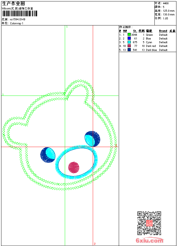 - emb花版参数: 大小:61.00 KB / 尺寸:130*125[毫米] / 针数:4400针 / 线色:5 / 格式:emb / 版本:9