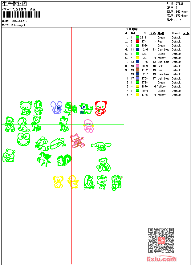 - 版带文件需绣花软件方可打开,可配色打印导出各种格式或直接上机绣。如无绣花软件可下载1:1模拟效果图。