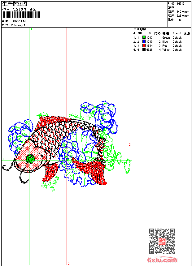 - emb花版参数: 大小:125.00 KB / 尺寸:226*160[毫米] / 针数:14715针 / 线色:4 / 格式:emb / 版本:9
