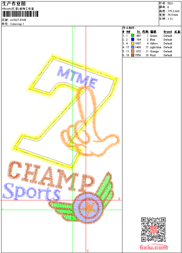 - emb花版参数: 大小:46.00 KB / 尺寸:80*115[毫米] / 针数:5521针 / 线色:6 / 格式:emb / 版本:9