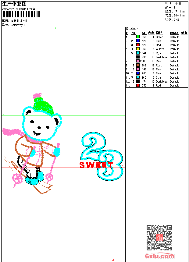 - 版带文件需绣花软件方可打开,可配色打印导出各种格式或直接上机绣。如无绣花软件可下载1:1模拟效果图。
