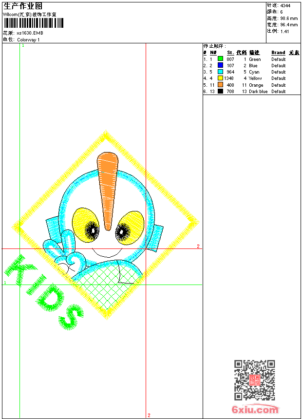 - 版带文件需绣花软件方可打开,可配色打印导出各种格式或直接上机绣。如无绣花软件可下载1:1模拟效果图。