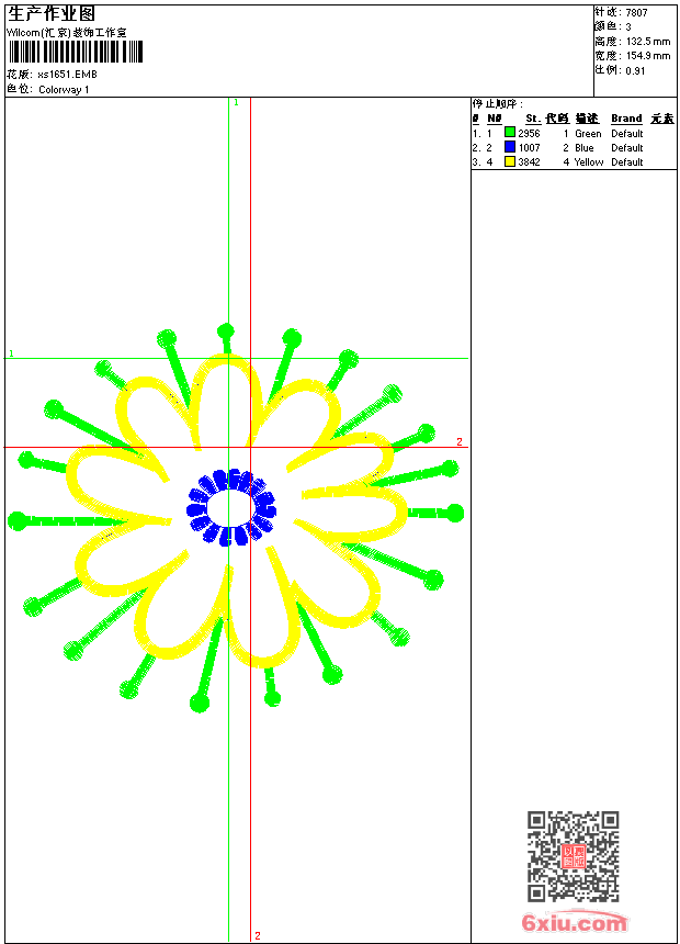 - emb花版参数: 大小:41.50 KB / 尺寸:155*132[毫米] / 针数:7807针 / 线色:3 / 格式:emb / 版本:9