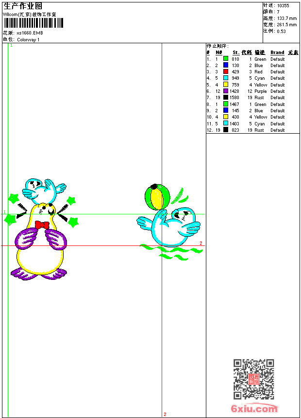 - 版带文件需绣花软件方可打开,可配色打印导出各种格式或直接上机绣。如无绣花软件可下载1:1模拟效果图。