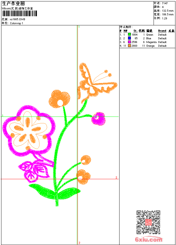 - 版带文件需绣花软件方可打开,可配色打印导出各种格式或直接上机绣。如无绣花软件可下载1:1模拟效果图。