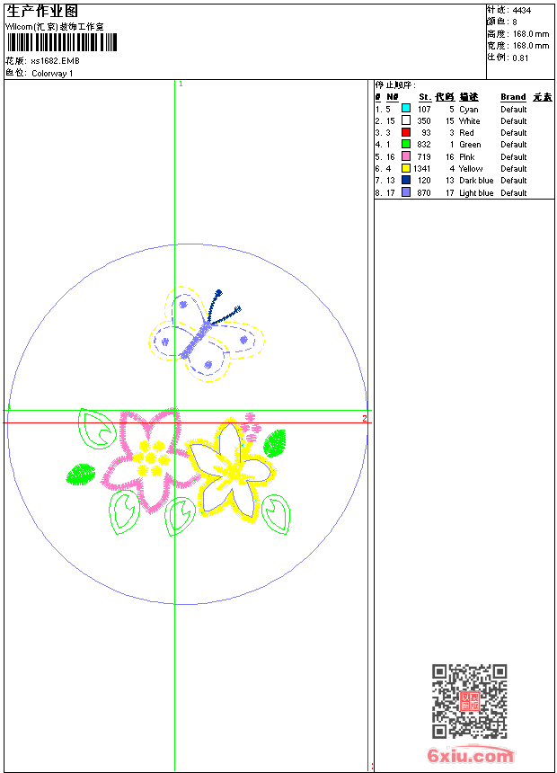 - emb花版参数: 大小:56.00 KB / 尺寸:168*168[毫米] / 针数:4434针 / 线色:8 / 格式:emb / 版本:9