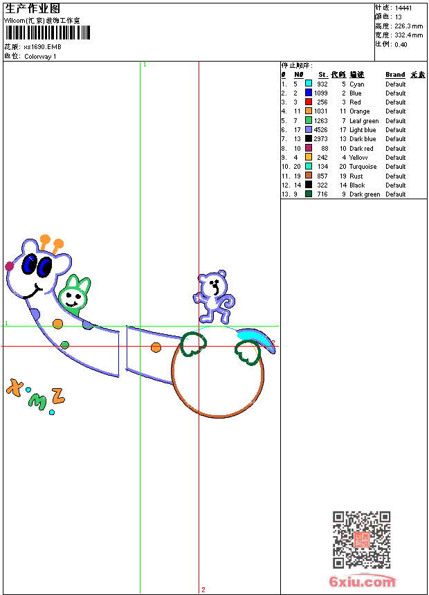 - 版带文件需绣花软件方可打开,可配色打印导出各种格式或直接上机绣。如无绣花软件可下载1:1模拟效果图。