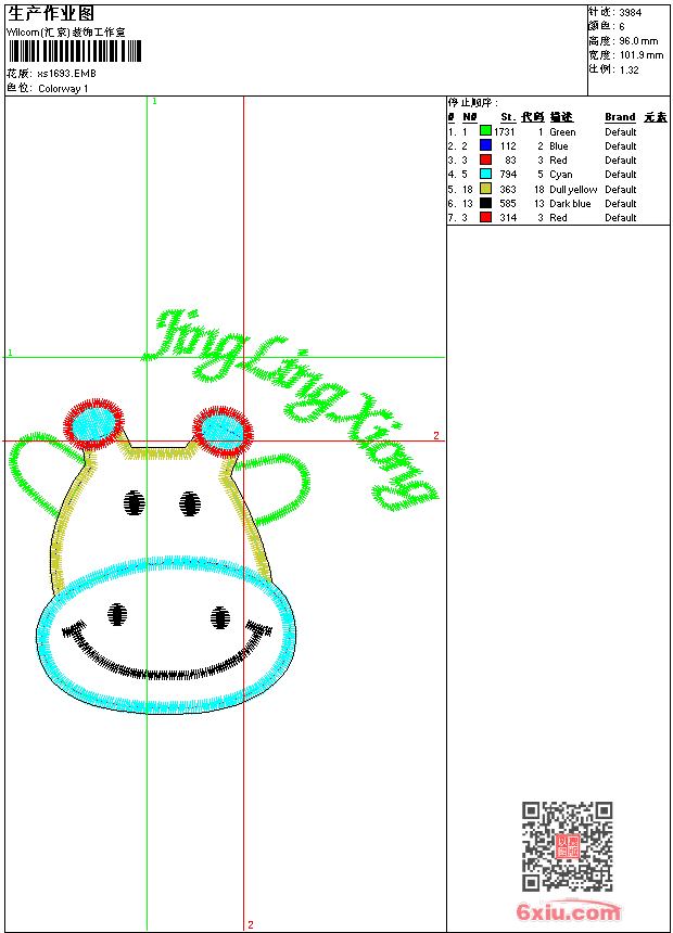 - 版带文件需绣花软件方可打开,可配色打印导出各种格式或直接上机绣。如无绣花软件可下载1:1模拟效果图。