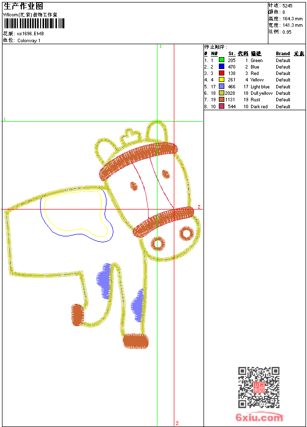 - 版带文件需绣花软件方可打开,可配色打印导出各种格式或直接上机绣。如无绣花软件可下载1:1模拟效果图。