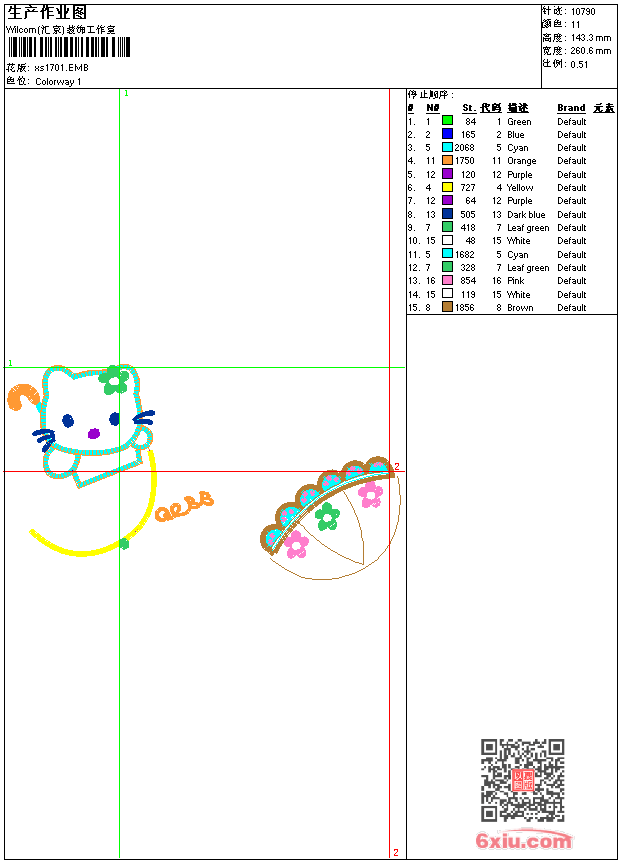 - 版带文件需绣花软件方可打开,可配色打印导出各种格式或直接上机绣。如无绣花软件可下载1:1模拟效果图。
