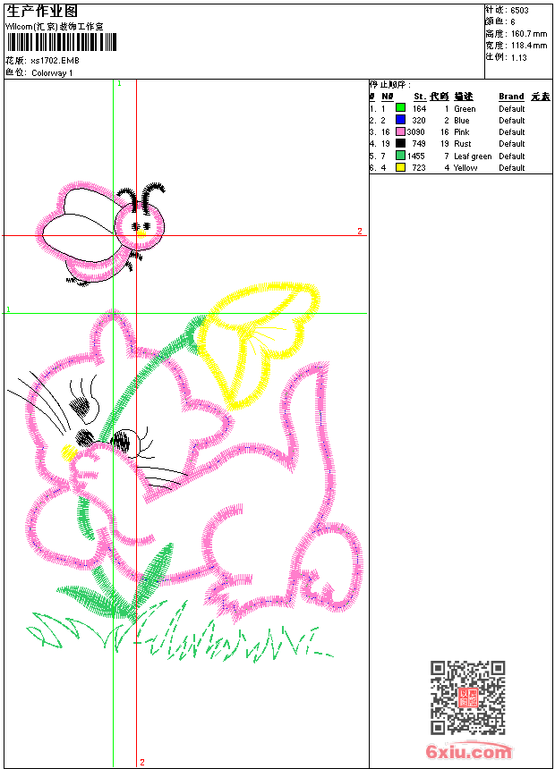 - 版带文件需绣花软件方可打开,可配色打印导出各种格式或直接上机绣。如无绣花软件可下载1:1模拟效果图。