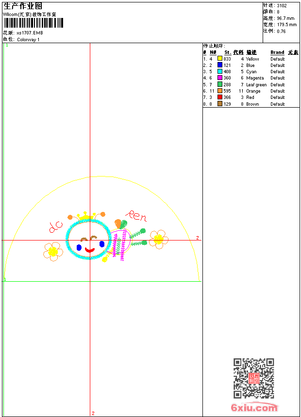 - 版带文件需绣花软件方可打开,可配色打印导出各种格式或直接上机绣。如无绣花软件可下载1:1模拟效果图。