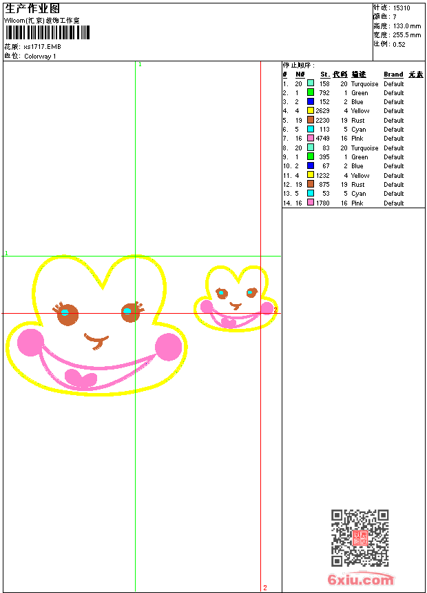 - 版带文件需绣花软件方可打开,可配色打印导出各种格式或直接上机绣。如无绣花软件可下载1:1模拟效果图。