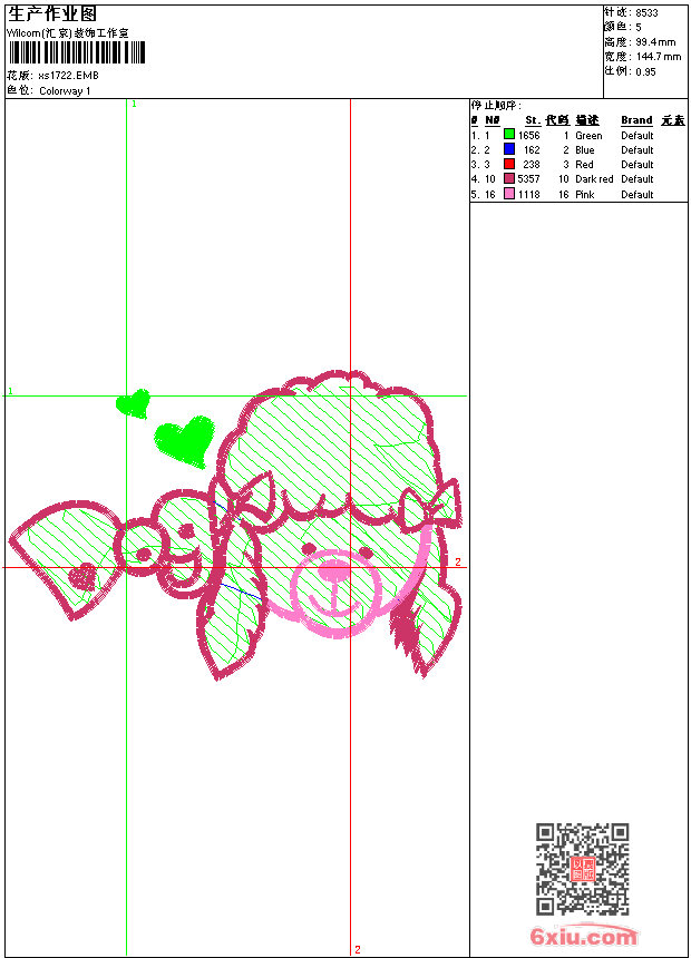 - 版带文件需绣花软件方可打开,可配色打印导出各种格式或直接上机绣。如无绣花软件可下载1:1模拟效果图。