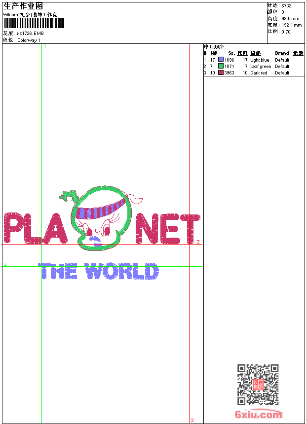 - 版带文件需绣花软件方可打开,可配色打印导出各种格式或直接上机绣。如无绣花软件可下载1:1模拟效果图。