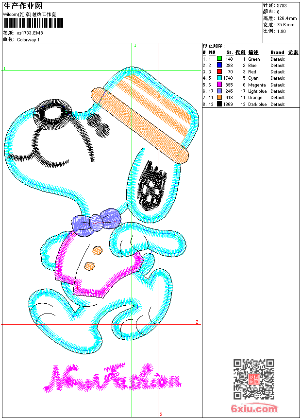 - 版带文件需绣花软件方可打开,可配色打印导出各种格式或直接上机绣。如无绣花软件可下载1:1模拟效果图。