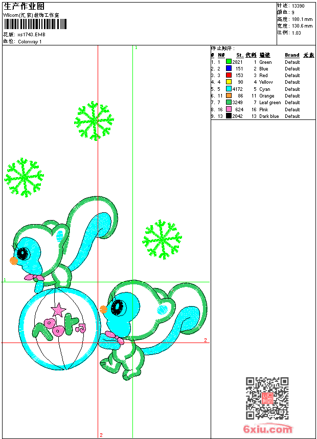 - 版带文件需绣花软件方可打开,可配色打印导出各种格式或直接上机绣。如无绣花软件可下载1:1模拟效果图。
