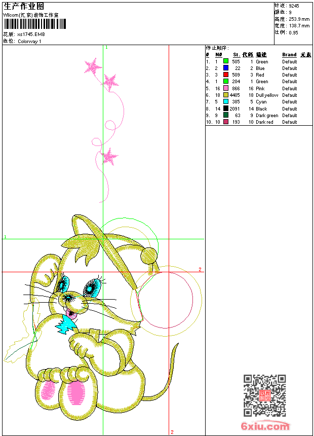 - 版带文件需绣花软件方可打开,可配色打印导出各种格式或直接上机绣。如无绣花软件可下载1:1模拟效果图。