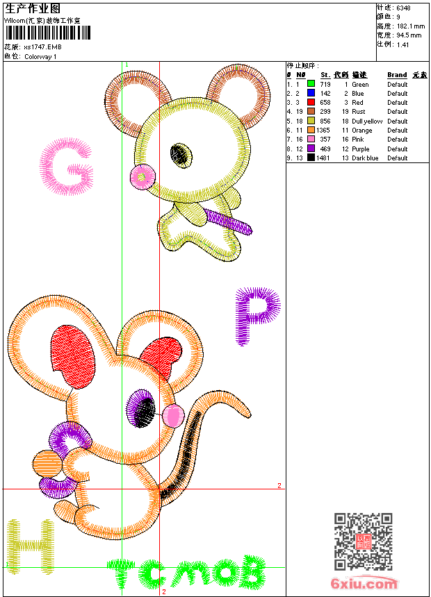 - 版带文件需绣花软件方可打开,可配色打印导出各种格式或直接上机绣。如无绣花软件可下载1:1模拟效果图。