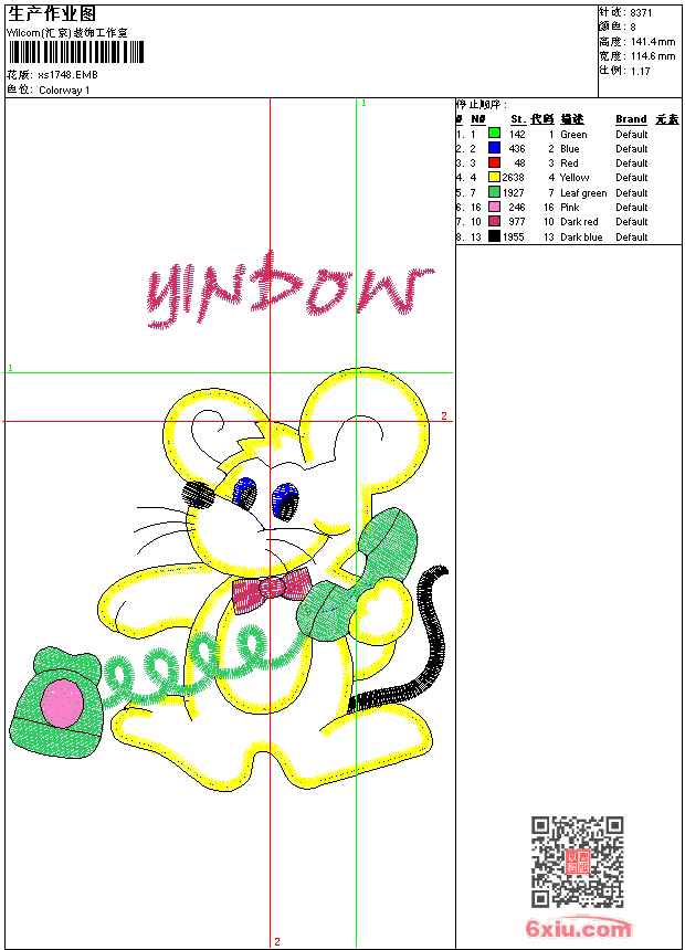 - 版带文件需绣花软件方可打开,可配色打印导出各种格式或直接上机绣。如无绣花软件可下载1:1模拟效果图。