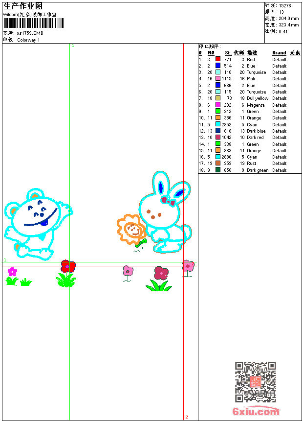 - 版带文件需绣花软件方可打开,可配色打印导出各种格式或直接上机绣。如无绣花软件可下载1:1模拟效果图。