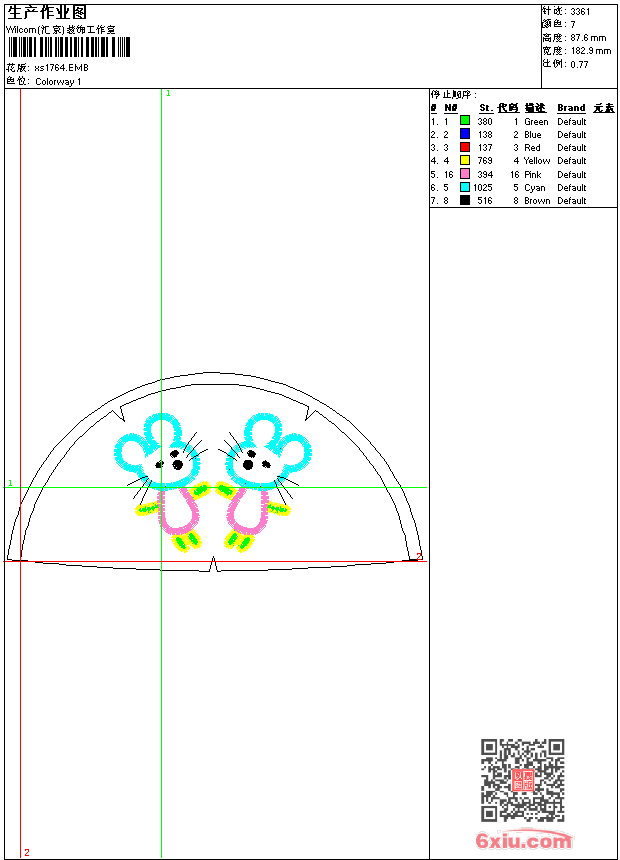 - 版带文件需绣花软件方可打开,可配色打印导出各种格式或直接上机绣。如无绣花软件可下载1:1模拟效果图。