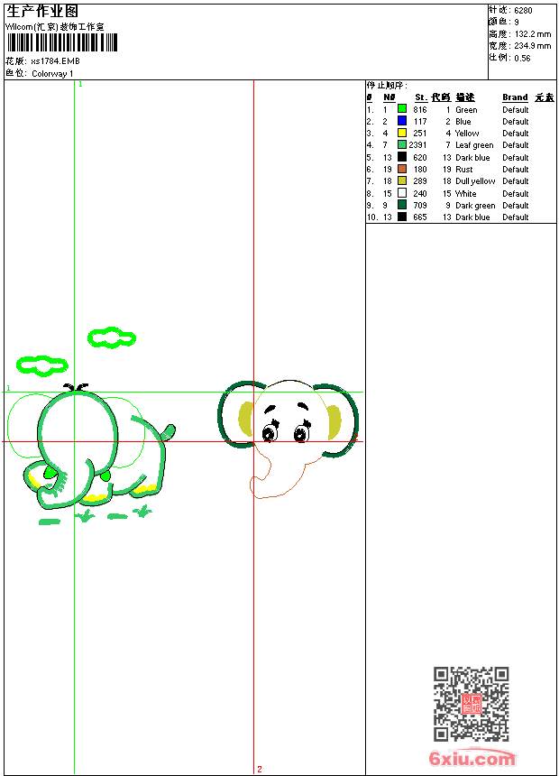 - 版带文件需绣花软件方可打开,可配色打印导出各种格式或直接上机绣。如无绣花软件可下载1:1模拟效果图。