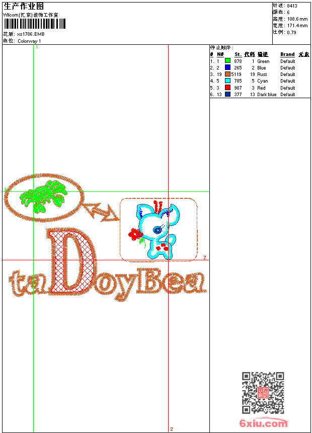 - 版带文件需绣花软件方可打开,可配色打印导出各种格式或直接上机绣。如无绣花软件可下载1:1模拟效果图。