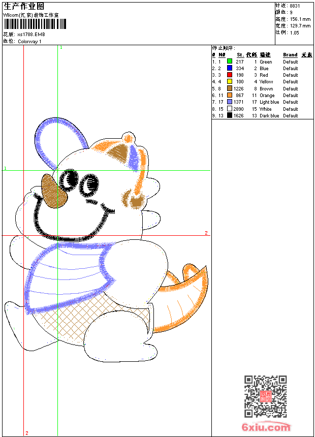 - 版带文件需绣花软件方可打开,可配色打印导出各种格式或直接上机绣。如无绣花软件可下载1:1模拟效果图。