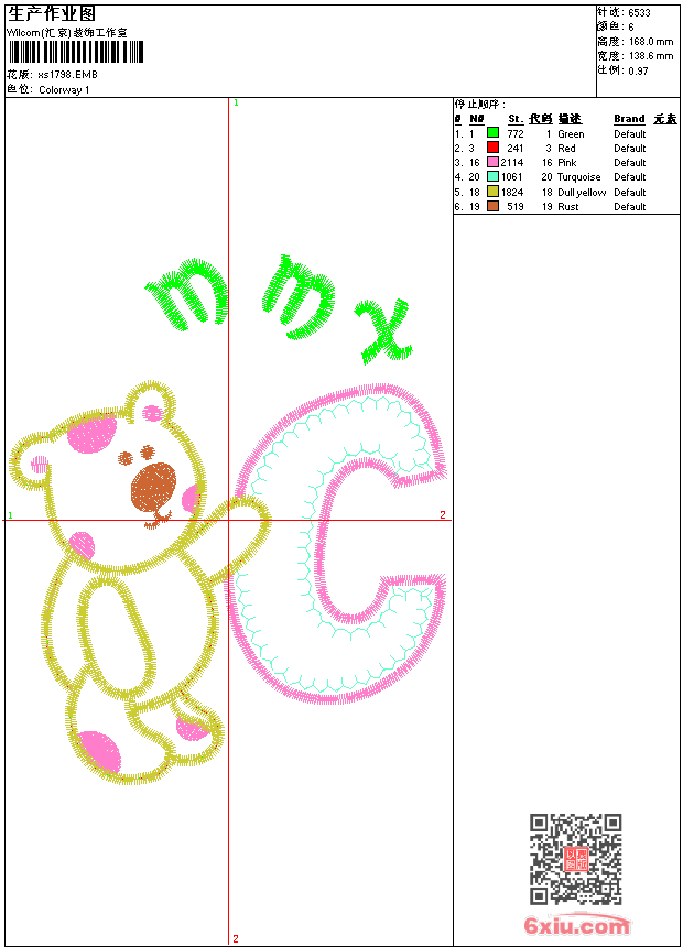 - 版带文件需绣花软件方可打开,可配色打印导出各种格式或直接上机绣。如无绣花软件可下载1:1模拟效果图。