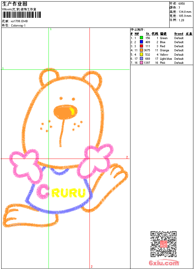 - 版带文件需绣花软件方可打开,可配色打印导出各种格式或直接上机绣。如无绣花软件可下载1:1模拟效果图。