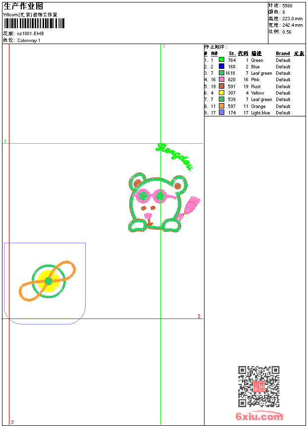 - 版带文件需绣花软件方可打开,可配色打印导出各种格式或直接上机绣。如无绣花软件可下载1:1模拟效果图。