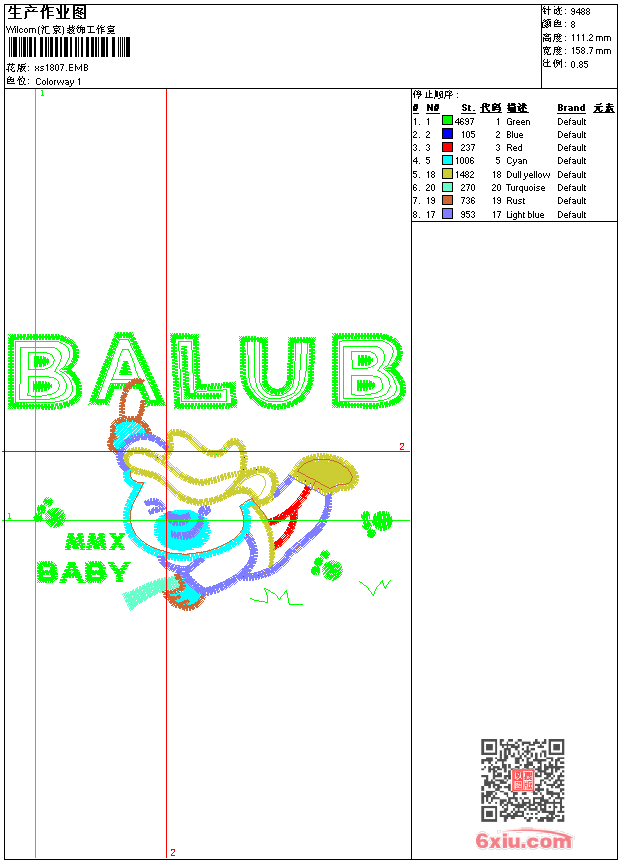 - 版带文件需绣花软件方可打开,可配色打印导出各种格式或直接上机绣。如无绣花软件可下载1:1模拟效果图。