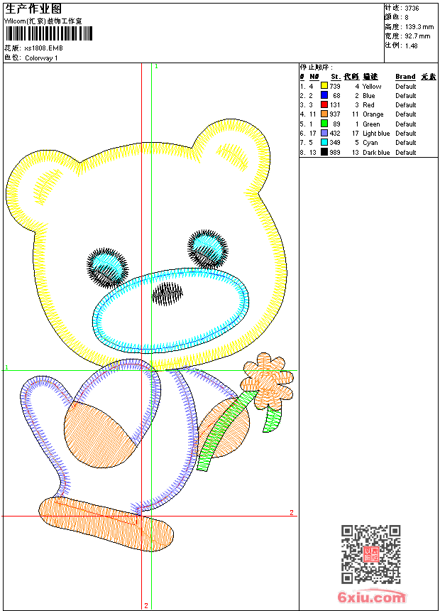 - 版带文件需绣花软件方可打开,可配色打印导出各种格式或直接上机绣。如无绣花软件可下载1:1模拟效果图。