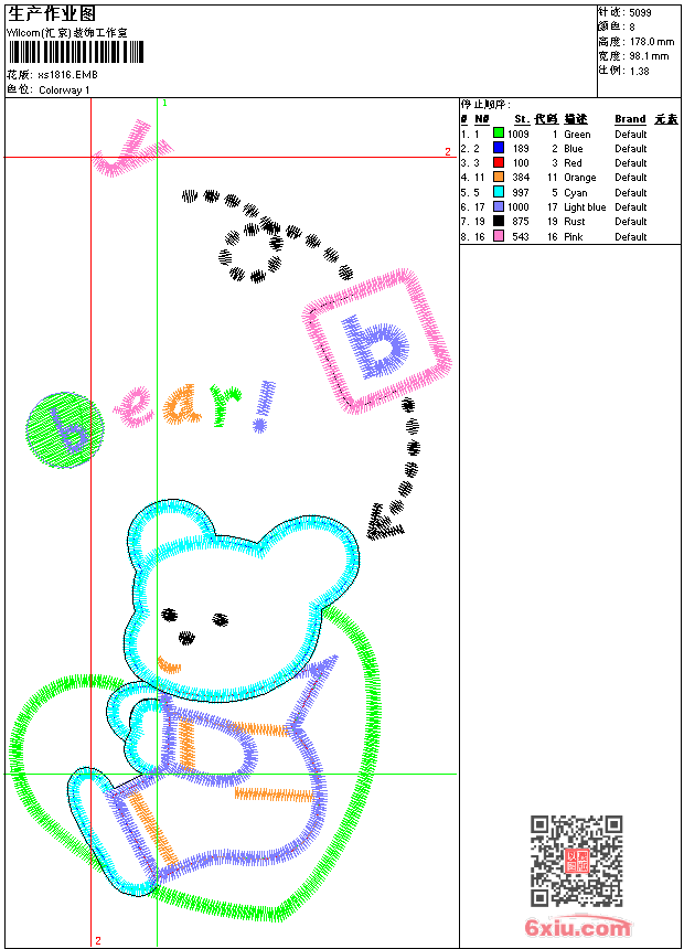 - 版带文件需绣花软件方可打开,可配色打印导出各种格式或直接上机绣。如无绣花软件可下载1:1模拟效果图。