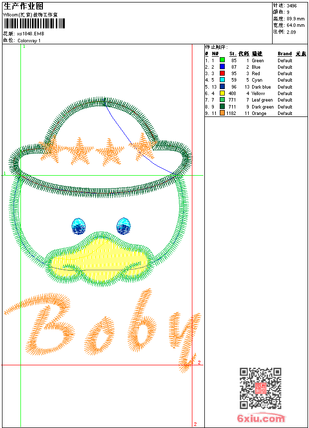 - 版带文件需绣花软件方可打开,可配色打印导出各种格式或直接上机绣。如无绣花软件可下载1:1模拟效果图。