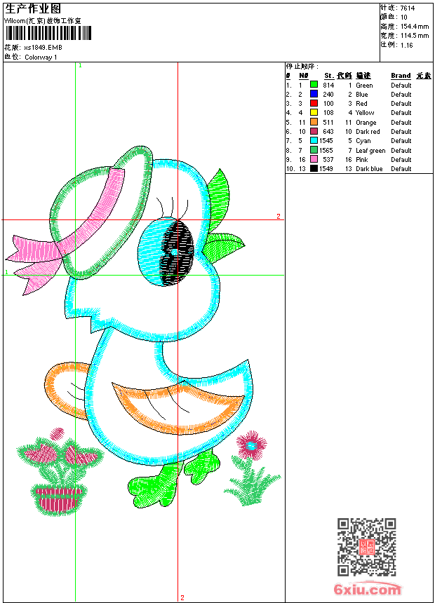 - 版带文件需绣花软件方可打开,可配色打印导出各种格式或直接上机绣。如无绣花软件可下载1:1模拟效果图。