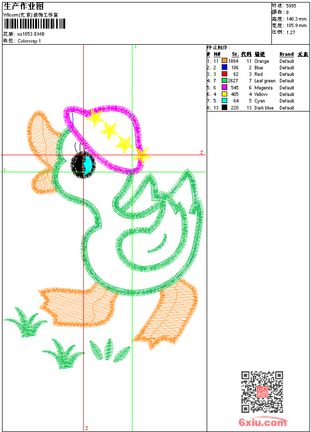 - 版带文件需绣花软件方可打开,可配色打印导出各种格式或直接上机绣。如无绣花软件可下载1:1模拟效果图。