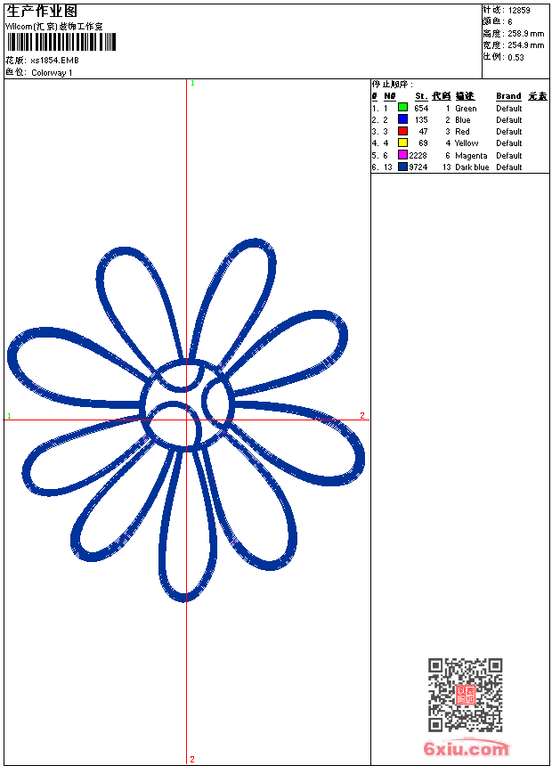 - emb花版参数: 大小:78.50 KB / 尺寸:255*259[毫米] / 针数:12859针 / 线色:6 / 格式:emb / 版本:9