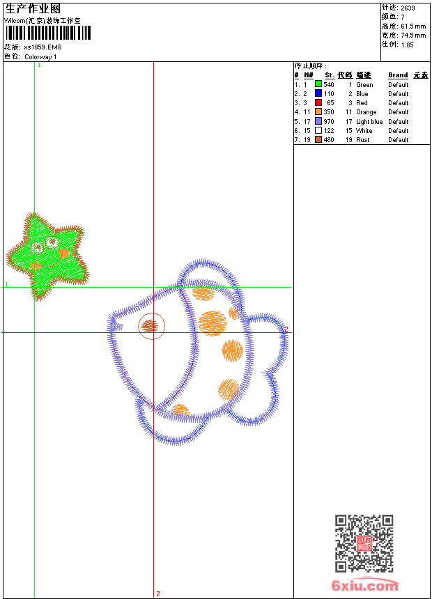 - 版带文件需绣花软件方可打开,可配色打印导出各种格式或直接上机绣。如无绣花软件可下载1:1模拟效果图。