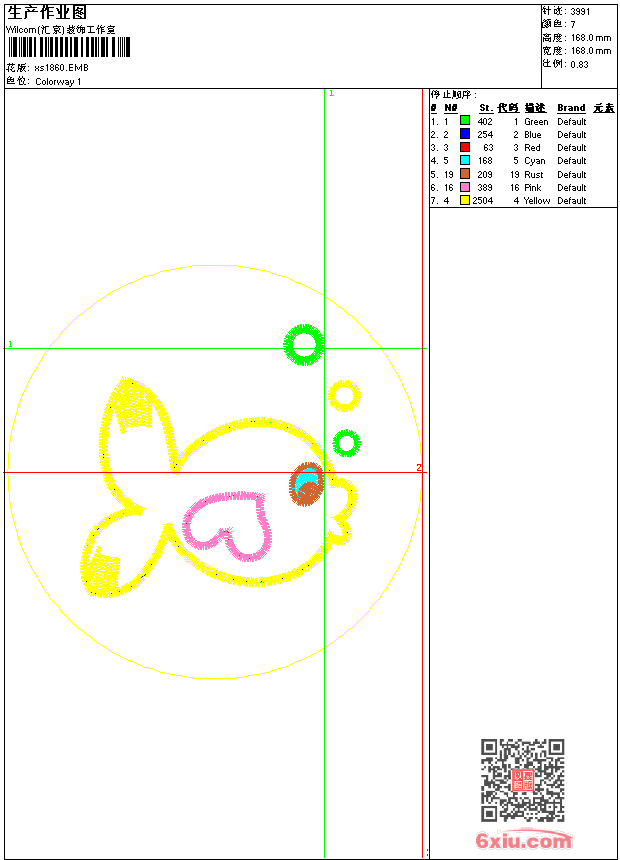 - emb花版参数: 大小:46.00 KB / 尺寸:168*168[毫米] / 针数:3991针 / 线色:7 / 格式:emb / 版本:9